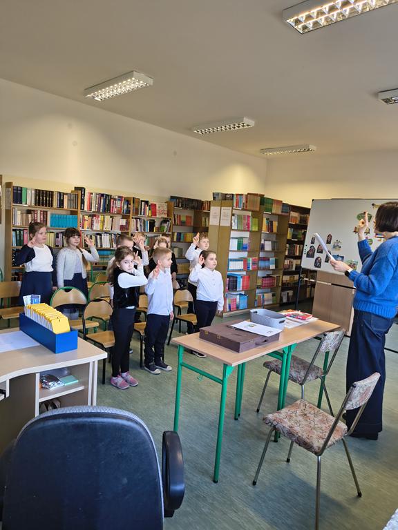 26 lutego 2026 r. w naszej szkole odbyła się uroczystość „Pasowania na czytelnika” uczniów klas pierwszych. Pierwszoklasiści poznali zasady korzystania z biblioteki, dowiedzieli się, jakie obowiązki posiada każdy czytelnik, jak należy dbać o książki, a następnie wysłuchali opowieści pt. „Noc w bibliotece” zaprezentowanej w formie teatrzyku Kamishibai.Dzieci wykonały wszystkie zadania perfekcyjnie i pokazały, że zasługują na miano dobrego czytelnika. Po uroczystym ślubowaniu wszyscy uczestnicy zostali nagrodzeni książką otrzymaną w ramach kampanii„Mała książka – wielki człowiek”.