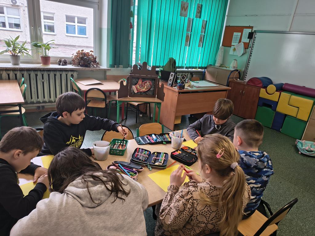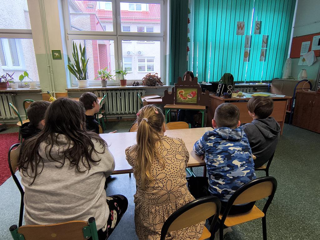 26 marca 2026 r. zostało zorganizowane spotkanie czytelnicze dla dzieci uczęszczających do świetlicy szkolnej. Jego celem było zapoznanie uczniów z ukraińską literaturą dziecięcą, a tym samym uczenie szacunku i tolerancji dla innych kultur, jak również zaprzyjaźnianie najmłodszych z książką i czytaniem. Dzieci z dużym zainteresowaniem wysłuchały ukraińskiej bajki ludowej pt. „Rękawiczka”, zaprezentowanej techniką kamishibai. Spotkanie przebiegło w miłej i przyjaznej atmosferze, sprzyjającej wykonaniu prac plastycznych do wysłuchanego utworu.