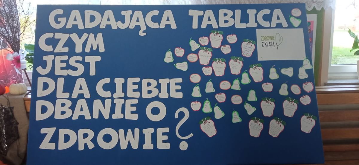 W ramach działań programu Zdrowie z Klasą, ambasadorzy zdrowia przeprowadzili innowacyjny projekt wśród uczniów klas IV-VI noszący nazwę „Gadająca tablica”, który miał na celu zebranie opinii uczniów na temat zdrowia, jego znaczenia oraz czynników, które wpływają na nasze samopoczucie i zdrowie fizyczne oraz psychiczne.