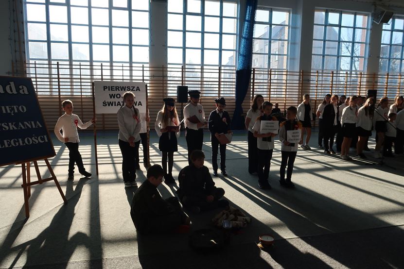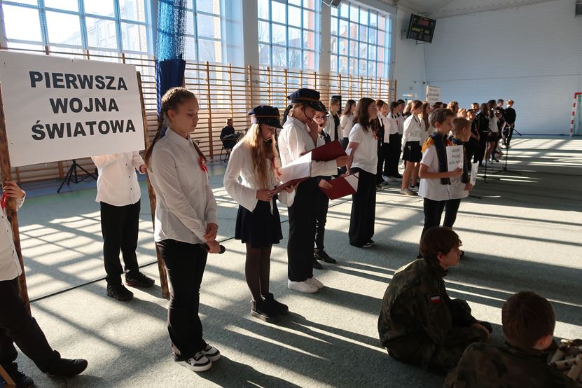 11 listopada 2025 r. przypada 107. rocznica odzyskania niepodległości przez Polskę. Z tej okazji, 07.11.2025 r. w Zespole Szkół w Kołbaczu przygotowano uroczystość dla upamiętnienia powrotu Polski na mapy świata po 123 latach niewoli pod zaborami. W niezwykłym montażu słowno-muzycznym pn. „Pociąg do wolności”, uczniowie naszej szkoły zabrali widzów we wzruszającą podróż po kartach historii, zatrzymując się na stacjach: Niewola, Powstania, I wojna światowa, by wreszcie wysiąść na peronie Wolność.