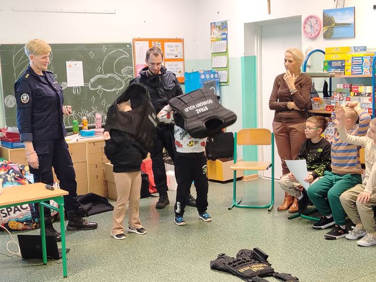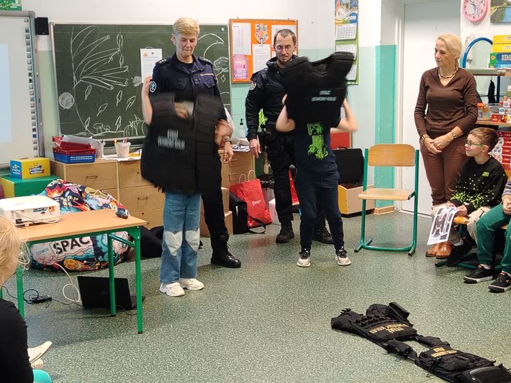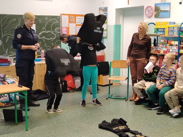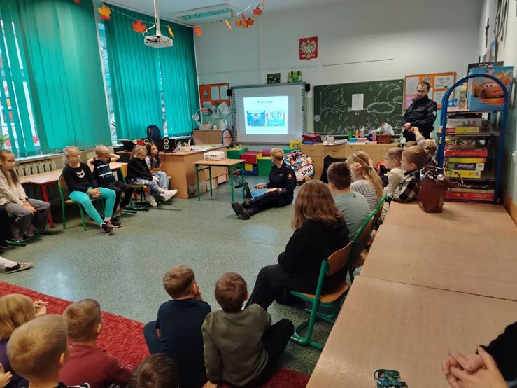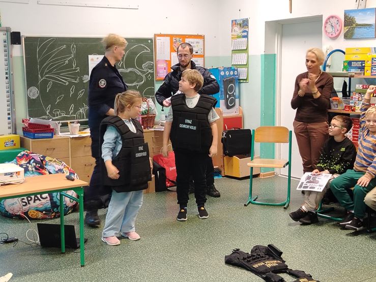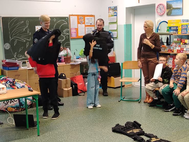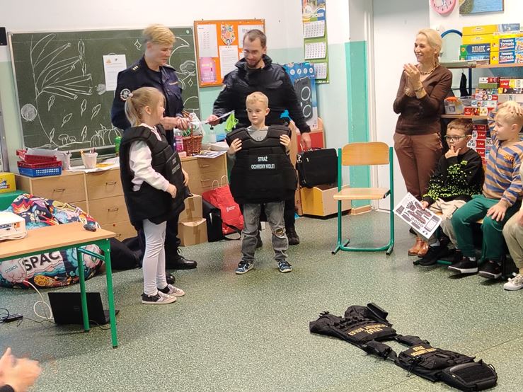 23 października w naszej szkole odbyło się spotkanie uczniów klas I-III ze Strażnikami Ochrony Kolei ze Szczecina. Dzieci uczyły się m.in. bezpiecznego zachowania na przejazdach kolejowo – drogowych strzeżonych oraz niestrzeżonych. Poznały podstawowe znaki oraz przypomniały sobie, jak właściwie postępować na dworcu kolejowym oraz w pociągu podczas podróży. Na koniec spotkania, dzieci otrzymały zeszyty edukacyjne i znaczki odblaskowe.