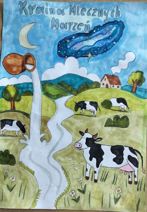 Z wielką radością informujemy o wspaniałym sukcesie naszych uczniów w wojewódzkim konkursie plastycznym „ Moja mleczna kraina”, który cieszył się ogromnym zainteresowaniem – na konkurs wpłynęło aż 300 prac z całego regionu. Celem konkursu było promowanie wiedzy o roli mleka i produktów mlecznych w codziennej diecie, a także ukazanie znaczenia rolnictwa i lokalnych tradycji związanych z produkcją mleka.