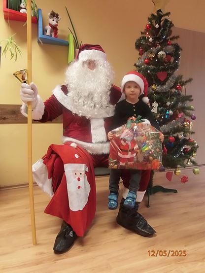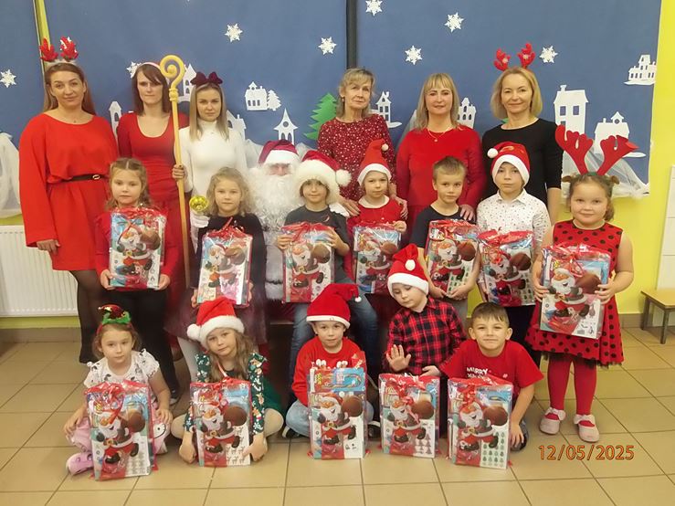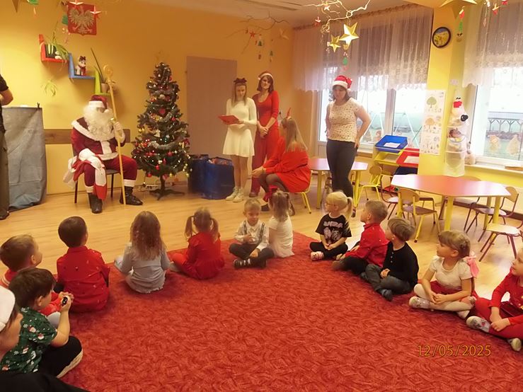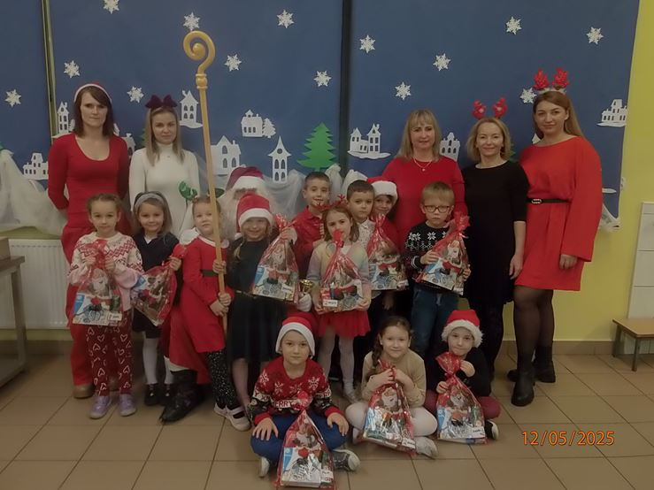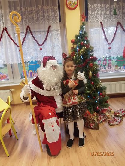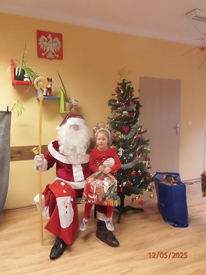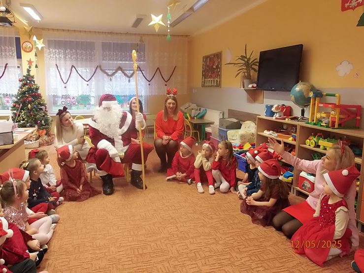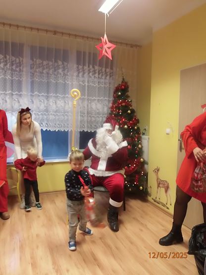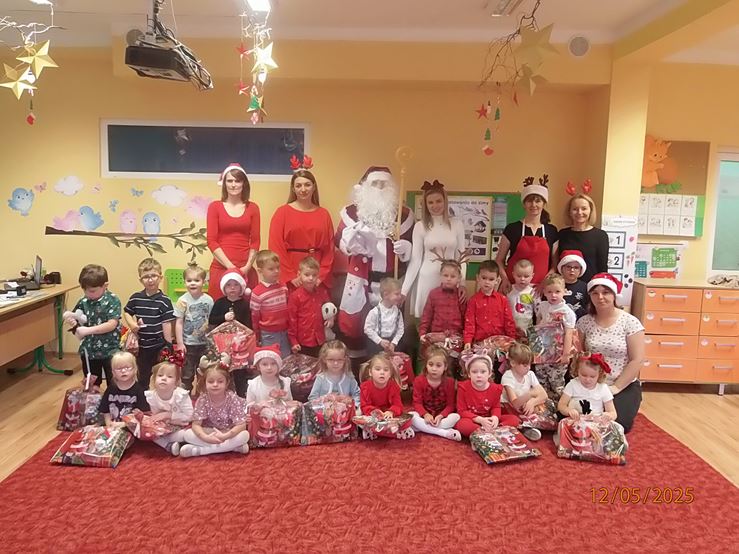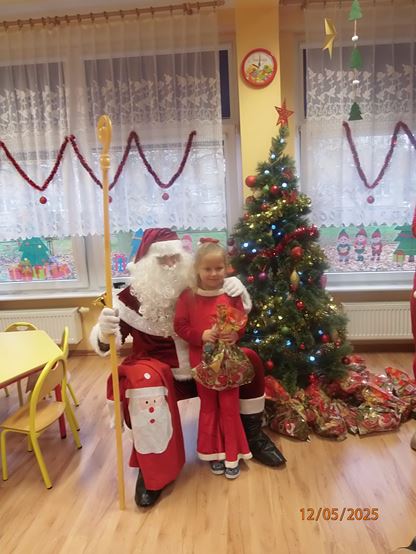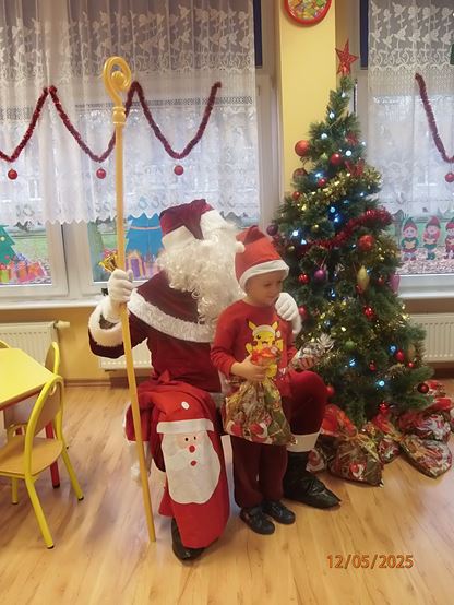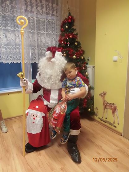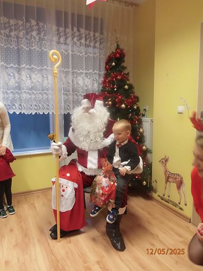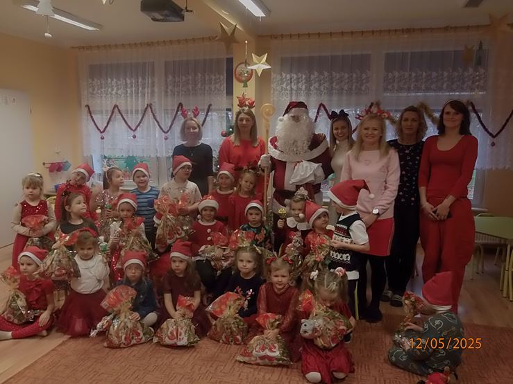 5 grudnia nasze przedszkole odwiedził bardzo miły i długo oczekiwany gość. Miał czerwony strój, długą, białą brodę, dźwigał na plecach bardzo ciężki worek, a w nim prezenty. To nie mógł być nikt inny tylko MIKOŁAJ - niezwykle wesoły, rozmowny i chętny do wspólnej zabawy. Pomimo braku białego puchu, jak co roku, przybył na czas. Spotkanie przebiegało w bardzo radosnej i przyjaznej atmosferze. Przedszkolaki śpiewały Mikołajowi piosenki, Święty Mikołaj obdarował wszystkie dzieci słodkimi prezentami. Na twarzach dzieci malowała się wielka radość i przejęcie, a także nadzieja na kolejne spotkanie. Święty Mikołaju bardzo dziękujemy za odwiedziny i do zobaczenia za rok!
