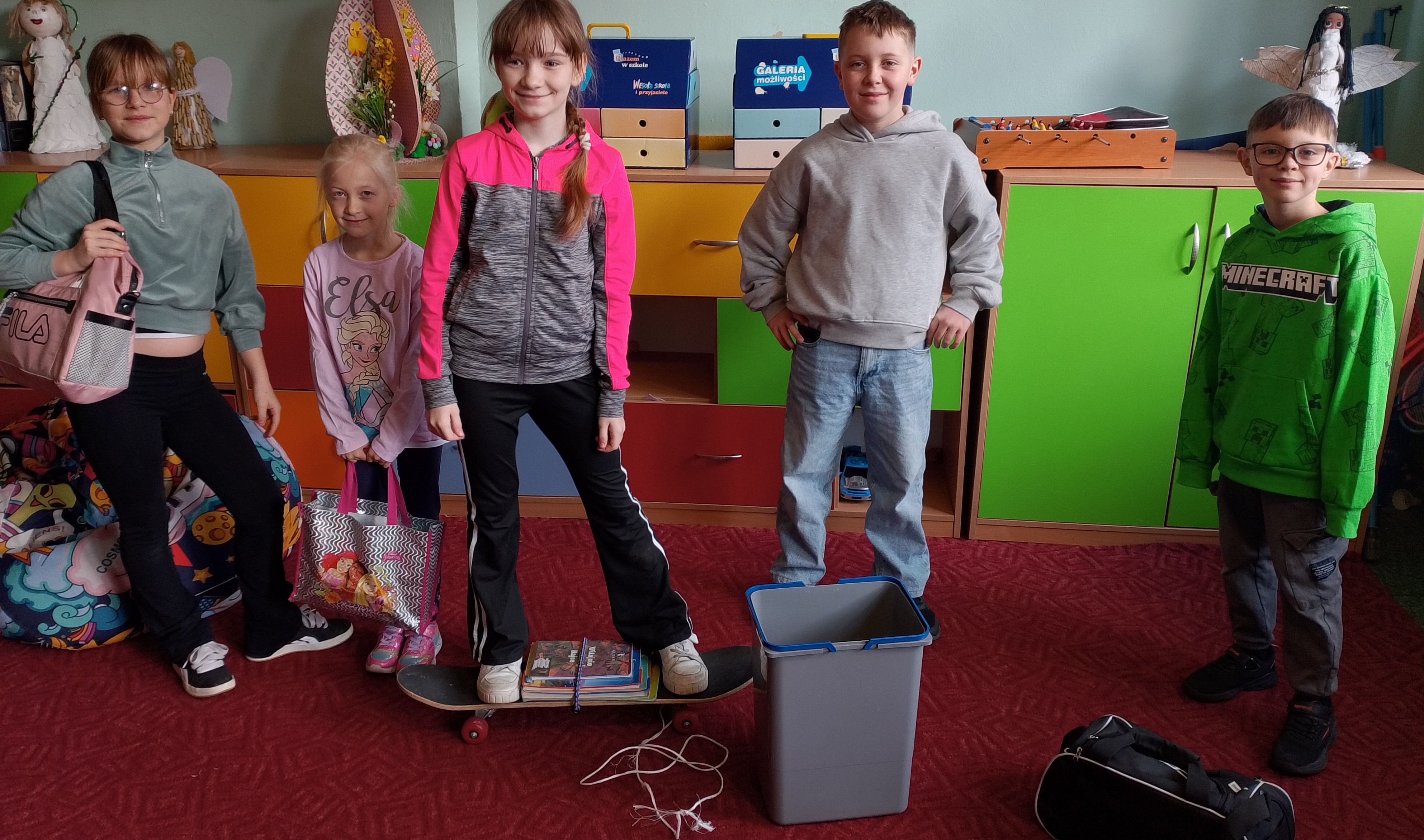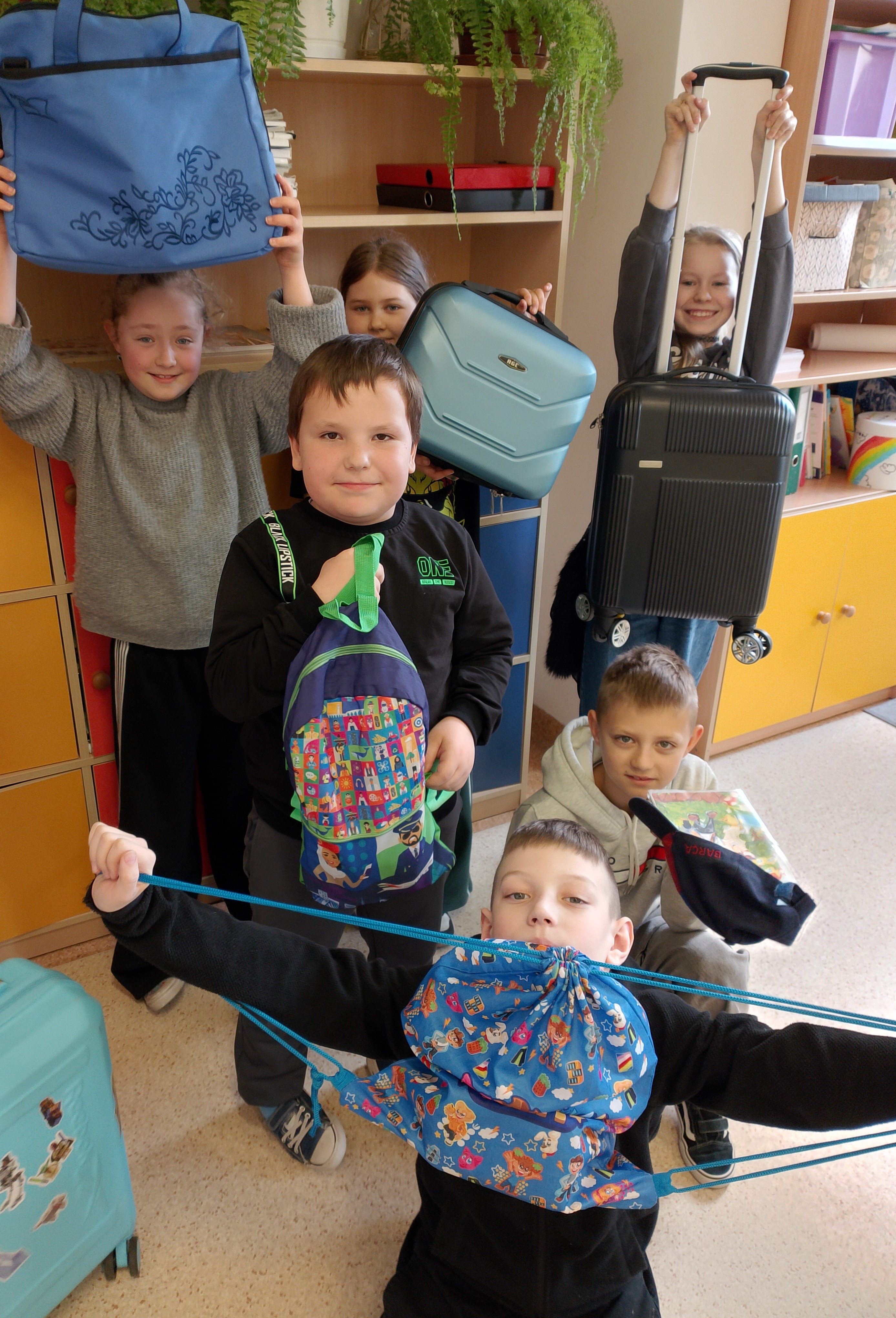 27 marca w naszej szkole odbył się „Dzień bez plecaka”. Uczniowie wykazali się dużą kreatywnością, przynosząc swoje książki i przybory szkolne w nietypowych przedmiotach. Zamiast plecaków pojawiły się m.in. walizki, kosze, garnki czy transportery dla zwierząt. Wydarzenie dostarczyło wszystkim mnóstwo radości i śmiechu, a w szkole panowała wyjątkowo pozytywna atmosfera.
