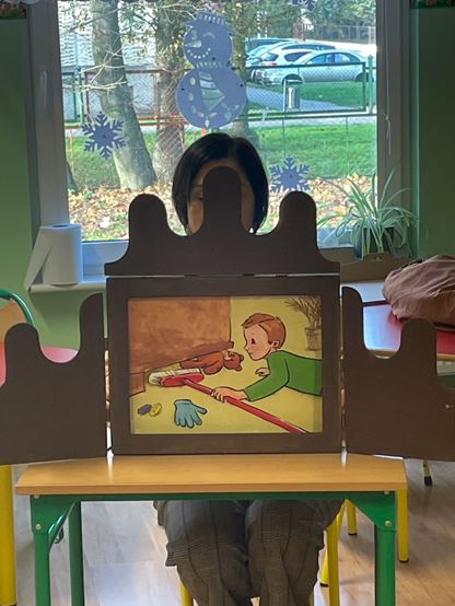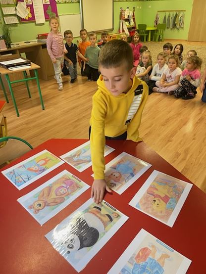 Podczas spotkania, dzieci rozwiązywały zagadki o znanych misiach, bohaterach książek i filmów, wysłuchały opowieści „Mój przyjaciel Pluszowy Miś” zaprezentowanej techniką kamishibai, odpowiedziały na pytania do przeczytanego tekstu, mi.in. co symbolizuje pluszowy miś i czym jest przyjaźń.