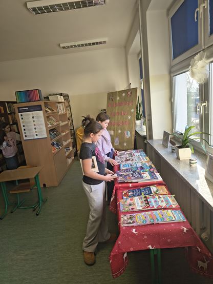 W dniach 12-18. 12. 2025 r. biblioteka szkolna przeprowadziła świąteczny kiermasz taniej książki. Wszystkie książeczki były nowe, pięknie wydane i w atrakcyjnych cenach.