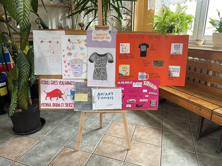 W maju, uczniowie klas 4–6 wzięli udział w językowym konkursie English Around Me, którego celem było dostrzeganie języka angielskiego w codziennym otoczeniu. Zadanie polegało na przygotowaniu plakatu ze zdjęciami lub rysunkami angielskich napisów zauważonych np. na ubraniach, opakowaniach, zabawkach czy szyldach, wraz z ich tłumaczeniem.