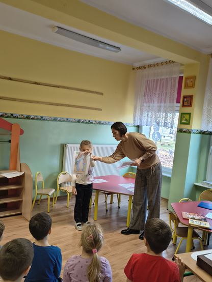 Zerówkowicze z wielką radością zapoznały się z magicznym dla nich miejscem. Dla wielu z nich była to pierwsza wizyta w bibliotece. Dzieci z wielkim zainteresowaniem oglądały książki znajdujące się na półkach. Dowiedziały się, co należy zrobić, aby stać się czytelnikiem biblioteki, jak należy się w niej zachować, a także obchodzić z książkami. Na zakończenie wysłuchały opowieści pt. „Wypożyczalnia skrzydeł” zaprezentowanej w formie teatrzyku Kamishibai.