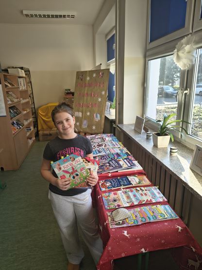 W dniach 12-18. 12. 2025 r. biblioteka szkolna przeprowadziła świąteczny kiermasz taniej książki. Wszystkie książeczki były nowe, pięknie wydane i w atrakcyjnych cenach.